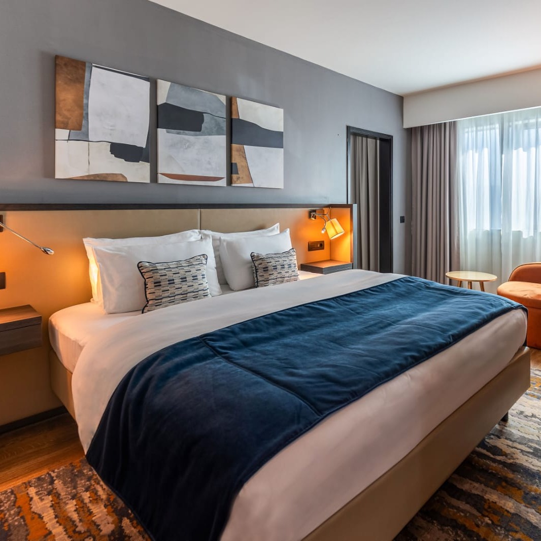 Crowne Plaza is located in Novi Beograd on the Sava river left bank. Venues and sites of interest located in its immediate vicinity are the Sava Centar congress hall, Štark Arena, Ušće Tower, and Gazela Bridge.